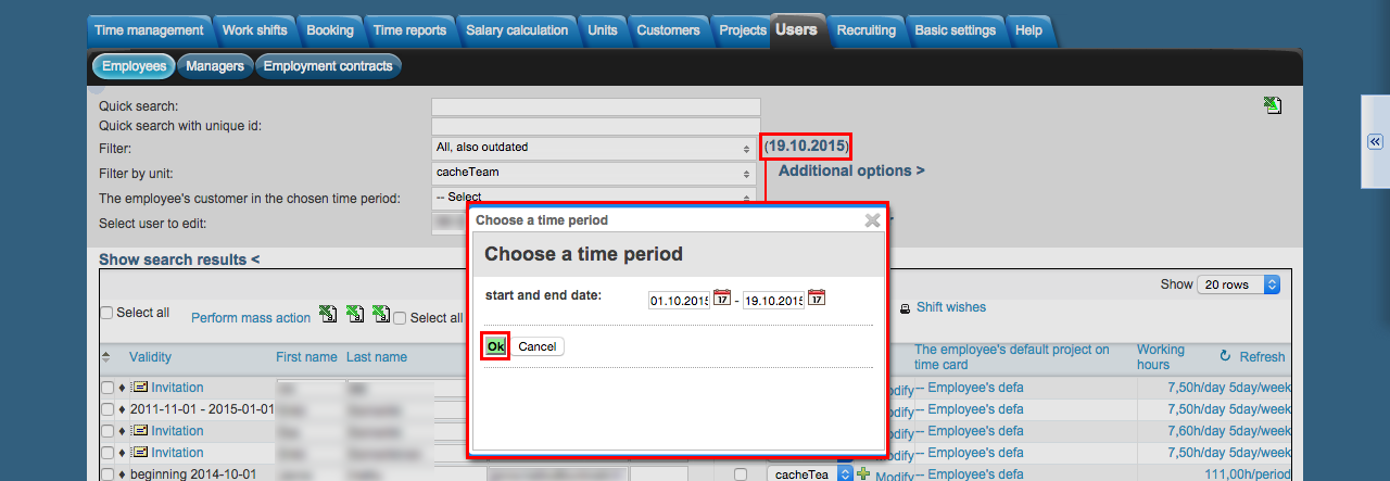 If you can't find the user you are looking for, you might want to try the All also outdated -selection from the filter -list. This is helpful, for example when you get a compatibility issue with other employee after changing information, but you can't find that person anywhere.